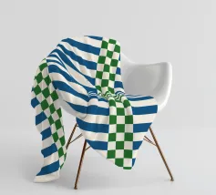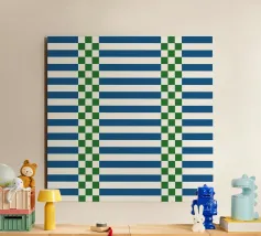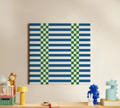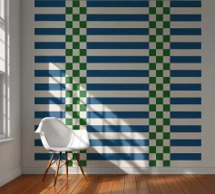 A refreshing blend of green and blue checks and lines on a crisp white background, this modern retro pattern brings an eclectic charm to your home. Perfect for creating a relaxing yet stylish atmosphere in any living space.