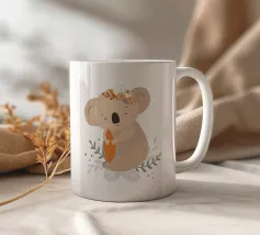 A cheerful little koala with a colourful lollipop. Ideal for child-friendly illustrations about sweets, animals and happy moments. Playful koala in a childlike style Colourful spiral lollipop in rainbow colours Soft colours and clear lines Cheerful, loving motif Perfect for child-related themes
