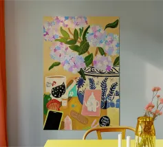 Paloma Villarreal is a Mexican-American painter and proud cat mum. Her lively works depict intimate, cosy moments. Here, lovingly organised domestic chaos is put in the spotlight, as are calmly drawing teacups, naps, domestic rituals and pantries filled with food. All bursting with colour. Paloma currently lives in Mexico City. Together with her partner and her cats, Mr Tumnus and Nissa.