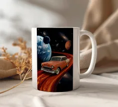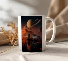 Embark on an interstellar adventure with Saturn Commute. This vibrant and thought-provoking piece of art transports you straight into a cosmic journey, as you gaze upon the illustrious rings of Saturn from the comfort of a retro car interior. The warm hues and nostalgic feel make it an ideal backdrop for those yearning for a touch of vintage space fantasy in their living room, home office, or gaming den. Immerse yourself in an astral escape, where timeless style meets the infinity of the universe.