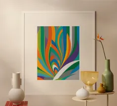 A bold abstract pattern with a touch of dynamic energy that symbolises movement and fluidity. Bright colours to evoke themes such as water, life and movement. An innovative fusion of tradition and modernity for contemporary, minimalist interiors. A unique visual language that transcends cultural boundaries.