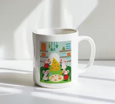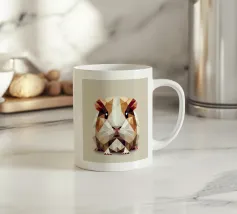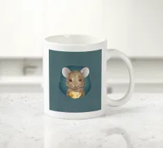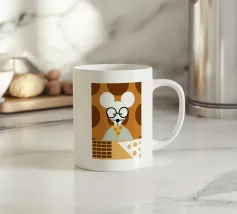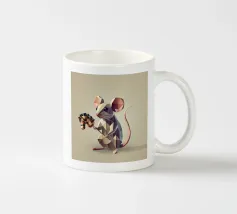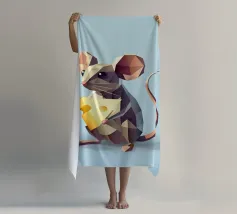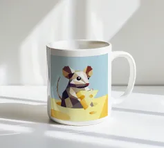 A cute mouse in geometric style holding a piece of cheese with relish - perfect for animal lovers, children and design enthusiasts. Humorous, charming and versatile. Funny mouse with a large piece of cheese Clear lines & polygon style in modern colours Charming and ideal for animal lovers Perfect as a fun gift or nursery motif Versatile use on products of all kinds