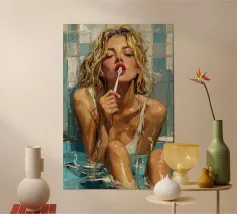 Fresh & Clean Vibe (Retro Pop) Get a blast of retro cool with this vibrant pop art illustration! Featuring bold lips, a classic toothbrush brimming with minty paste, and an energetic striped background, this piece radiates a feeling of sparkling freshness and confident oral care. It's a stylish nod to vintage advertising with a timeless message of clean hygiene!