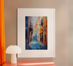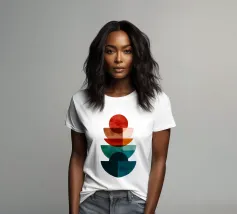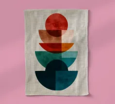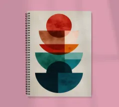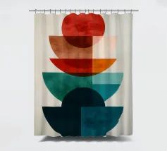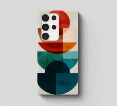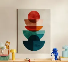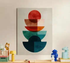 A serene exploration of symmetry and color harmony. This geometric abstract artwork layers semi-circular forms in rich tones of terracotta, ochre, teal, and midnight blue, symbolizing balance and unity. The clean composition and warm minimal palette evoke a modern yet timeless feel — ideal for interiors that embrace simplicity, structure, and calm sophistication.