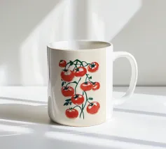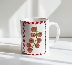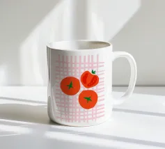 The cheerful and colorful design features a fresh and appetizing tomato pattern.