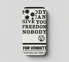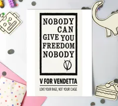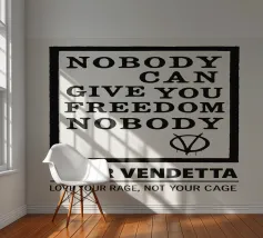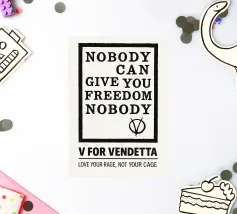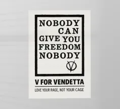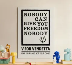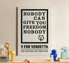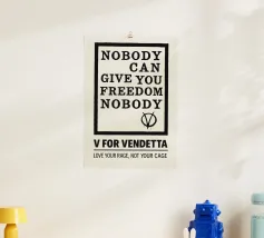 V For Vendetta Print, Alternative Movie Poster, Minimal B&W WallArt, Freedom Quote, Nobody Can Give You Freedom, Movie Fans Gift