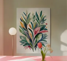 A vibrant watercolor painting of a bouquet of colorful leaves and branches, perfect for adding a touch of nature to your home.