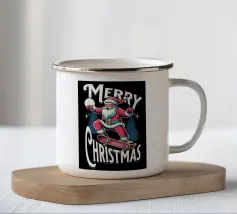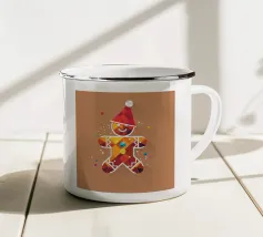 A gingerbread man wearing a Santa hat is joyfully skateboarding. The words "Can't Catch Me" add a playful touch above the character.