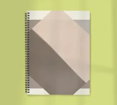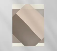 A geometric composition features overlapping rectangles in shades of beige and brown, creating a modern minimalist effect. The diagonal arrangement adds a sense of movement and depth.
