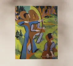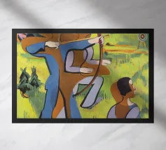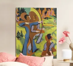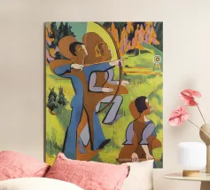 Experience the vibrant energy of Ernst Ludwig Kirchner's "Archers" (1935-1937), a quintessential work of German Expressionism. This dynamic digital poster captures the artist's bold use of color and simplified forms, depicting figures engaged in the timeless act of archery. The artwork reflects Kirchner's fascination with primitive art and his desire to express raw emotion and vitality. Reproduced at an exceptional 7000x5000 pixels and 300 dpi, this print ensures every vivid hue and brushstroke is rendered with museum-quality precision, bringing the intensity of Expressionism to your space. Pe