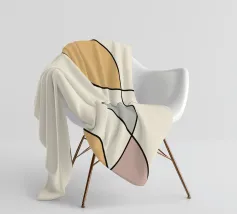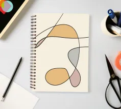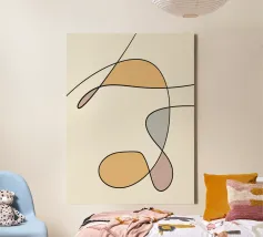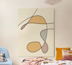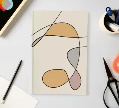 A collection of abstract shapes in earthy tones overlaid with thin, dark lines creates a modern and minimalist design. The composition feels calm and balanced, with the use of negative space contributing to the overall simplicity.