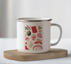 A modern, abstract composition featuring a patchwork of various patterns and shapes. Elements include organic leaf like forms, geometric grids, and abstract textures in a muted palette of pink, black, and beige, reflecting a bohemian, eclectic style.
