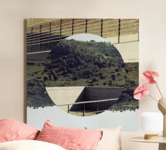 Nicolas Messaritis grew up in Cyprus but moved to London to study architecture at the age of nineteen. He explores themes of escapism and invasion in his photographic collages which juxtapose desert landscapes with geometric shapes and man-made structures. His work is influenced by photographers and illustrators such as Mark Weaver and Rob Sherridan, and architects like Mies Van Der Rohe and Frank Lloyd Wright. Looking out of the bus while riding through the city, having discussions about form and function, and listening to Nick Cave, Tom Waits, and David Bowie on his headphones also provide the experimental architect with inspiration.