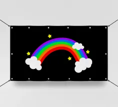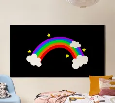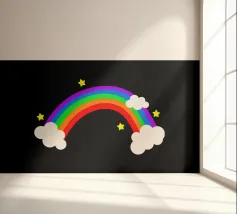 Rainbow with clouds and stars