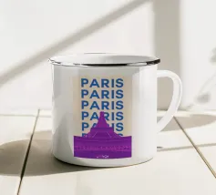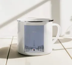 The famous landmark of Paris, the Eiffel Tower, in a very modern design. Artistic work with typographic elements.