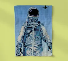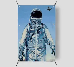 Scott Listfield's works tell the story of a lone astronaut who sets off on a quest and encounters pop culture icons, brand logos and science fiction allusions on his journey. The American artist studied at Dartmouth College and returned to the USA after a stay abroad, where he began to paint astronauts and sometimes dinosaurs. The artist regularly exhibits his work in galleries and museums around the world, and his designs have also been featured in Juxtapoz, Wired Magazine and The Boston Globe. In 2018, the first book about his work was published by Paragon Books.