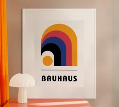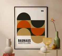 This graphically clear, abstract Bauhaus motif shows a rhythmic triangle and square pattern in strong red on a warm cream background. The strictly geometric arrangement creates an exciting balance of dynamism and order and is reminiscent of classic Bauhaus and mid-century design principles. Through the deliberate use of contrast and repetition, the pattern appears modern, timeless and architectural at the same time. The reduced colour palette lends the design calm and strength without losing expression. Ideal as a wall mural for living rooms, design posters, modern wall art.