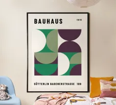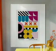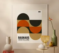 This graphically clear, abstract Bauhaus motif shows a rhythmic triangle and square pattern in strong red on a warm cream background. The strictly geometric arrangement creates an exciting balance of dynamism and order and is reminiscent of classic Bauhaus and mid-century design principles. Through the deliberate use of contrast and repetition, the pattern appears modern, timeless and architectural at the same time. The reduced colour palette lends the design calm and strength without losing expression. Ideal as a wall mural for living rooms, design posters, modern wall art.