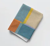 A bold geometric design featuring fine vertical stripes in rich tones of red, blue, green, pink, yellow, orange and warm beige. The pattern creates a dynamic sense of movement with a subtle 3D effect, blending playful colour contrasts with directional rhythm. Inspired by Bauhaus aesthetics, this striking design brings vibrant energy and clean, modern style to home decor, accessories, apparel, and more.