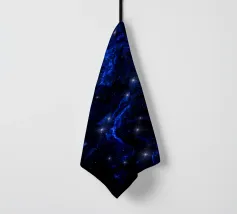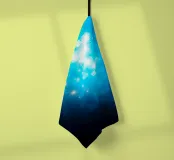 Deep blue hues create a calming backdrop filled with sparkling light effects. T