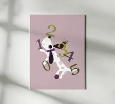 Add charm and curiosity to your child's room with this delightful illustration of a joyful dog dancing among playful numbers and soft shapes. With muted tones and elegant composition, it’s the perfect art piece for stylish nurseries and modern play spaces. Ideal for early learning environments or animal-themed decor.