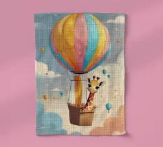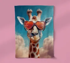 Bring home a touch of cuteness and warmth with this adorable design! Featuring a charming giraffe lovingly hugging a heart-shaped pillow on a fluffy cloud, all surrounded by vibrant rainbow hues. This playful and love-filled design is perfect for adding a cheerful vibe to any room, making it a delightful companion for cozy moments or as an eye-catching decorative piece. Perfect for: Adding a splash of fun to a child's room or as a unique gift for someone special.