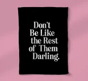 Elevate your space with this striking Coco Chanel typography art print. The iconic phrase "Don't Be Like the Rest of Them Darling" is elegantly rendered in vintage white serif lettering, creating a bold contrast against a solid black background. This timeless design captures Chanel's spirit of individuality and style, perfect for adding a touch of sophistication to any room. Ideal for fashion enthusiasts, empowered individuals, or anyone who appreciates classic elegance with a modern twist. Let this print inspire you to embrace your uniqueness and stand out from the crowd.