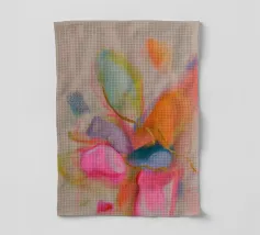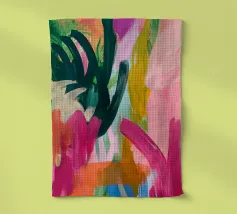 This modern, abstract acrylic poster uses vibrant splashes of pink, green, yellow and white. The flowing colours and geometric structures create a harmonious and dynamic composition. Ideal as a decorative work of art, it brings a fresh mood to any room.