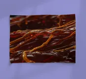 A mesmerizing display of fluid dynamics where orange and red liquid layers swirl and intertwine across a textured surface, creating an intricate visual.