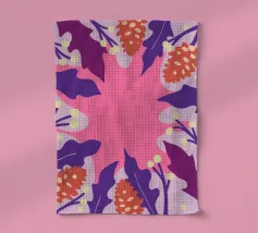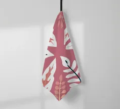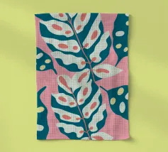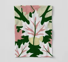 An illustration featuring a leaf pattern with a simple style, using pink, white, and brown colors. This illustration provides a fresh and modern look.