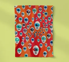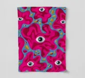 A mesmerizing and psychedelic pattern featuring repeating eyes amidst swirling, organic pink and magenta shapes. This bold and surreal artwork is both hypnotic and intensely energetic.