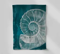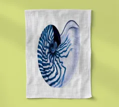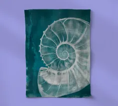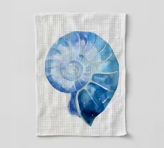 A blue nautilus shell in soft blue tones against a white background radiates calm and aesthetics. Its spiral shape and simple beauty invite the viewer to explore the secrets of the underwater world. A timeless work of art in a maritime style.