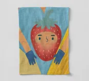 A charming illustration of a person wearing a strawberry costume with a cute expression.