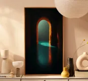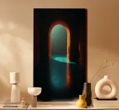 Bright light streaming through a calm archway canvas