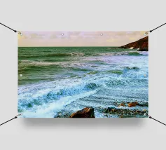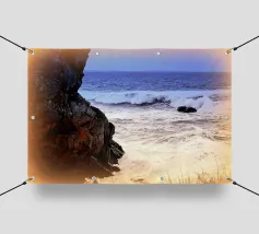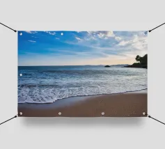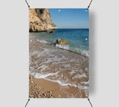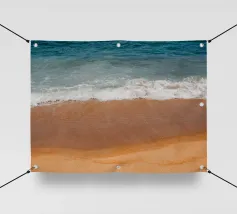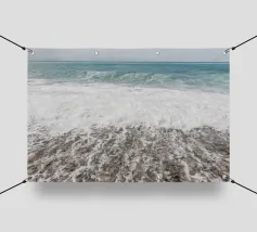 Imagine a golden beach with gentle waves lapping gently on the shore while the radiant sun warms your skin. In this dreamlike paradise, you can escape from everyday life and unwind. The scent of salty sea air and the calming sound of the waves invite you to relax completely. ✨ Available as a picture, fashion piece, cushion and more.