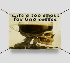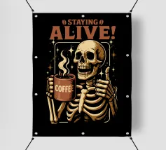 Skeleton Holding Coffee