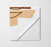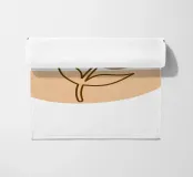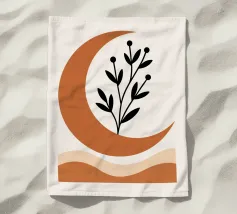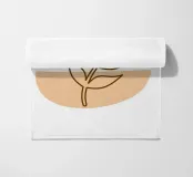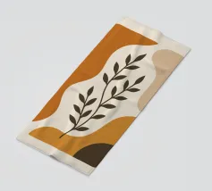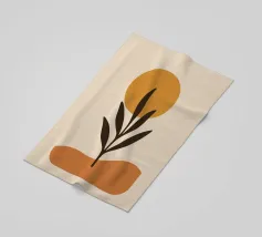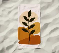 An abstract composition features a simple brown and beige geometric background with a delicate line drawing of a leafy twig. Minimalist design emphasizes natural elements in a harmonious balance.