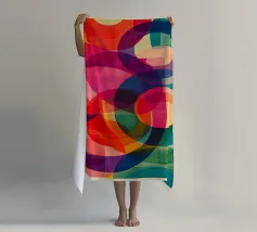 This modern art poster shows overlapping, rounded shapes in bold colours such as blue, red, orange, pink and yellow - seemingly floating and interconnected. The transparent effect of the colours creates depth and lightness at the same time. Ideal for minimalist rooms, creative offices or as a stylish highlight in your gallery wall.