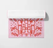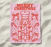 This cheerful nutcracker marches across a pink candy-coated world, surrounded by bows, sparkles, and sugar treats. A whimsical twist on a timeless classic.