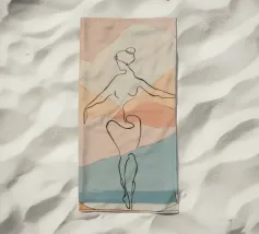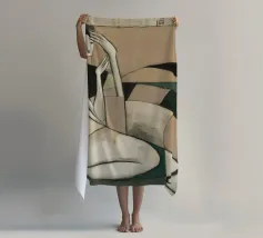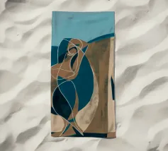 This artwork depicts an abstract composition with curving lines and shapes, rendered in soft colors like beige, brown, and blue. The composition is graceful and fluid, evoking a sense of movement and elegance.