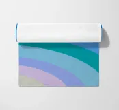 This delicate illustration shows a rainbow in pastel colours with soft colour gradients from light blue to pink to pastel yellow and light green. Geometric lines and structured stripes give the graphic design work a modern touch and reflect nature. A harmonious interplay of colours that radiates calm and joy.
