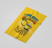 Humorous artwork featuring a vibrant yellow background, a lemon, a steaming coffee cup, and playful text reading "Life Gave Me Lemons So I Made Coffee." Perfect for motivational or lighthearted designs.
