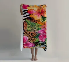 Terry velour with a mix of 55% microfiber and 45% cotton.