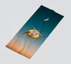 A cheerful scene: a llama floating in a pool, happily wearing a swim ring. Bright, fun, and unexpected — this design adds humor and summer spirit to bathrooms, kids’ rooms, or any space that could use a smile.