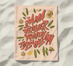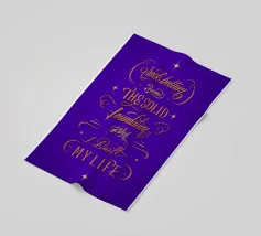 Beautiful lettering in yellow and orange hues, accented with blue relief on a soft, gentle background.