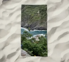 Terry velour with a mix of 55% microfiber and 45% cotton.