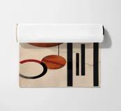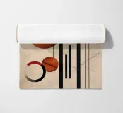 This impressive design combines geometric shapes with a warm colour palette of earth tones, black and red. The combination of vertical lines, circles and curved elements creates a harmonious balance between structure and dynamism. Perfect for murals, mugs, mobile phone cases or cushions - a must-have for modern art lovers who want to add a timeless, artistic touch to their home or everyday life.