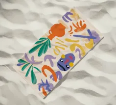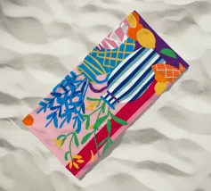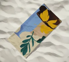 Terry velour with a mix of 55% microfiber and 45% cotton.
