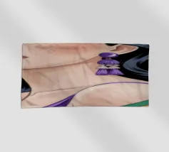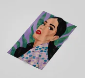 This artwork shows a person wearing a shirt with a geometric pattern, set against a background of green leaves. The focus is on the intricate design of the shirt and the natural elements surrounding it.