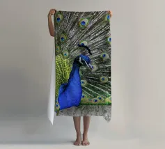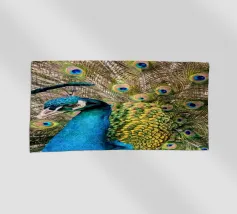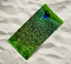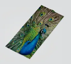 A stunning photograph capturing a peacock in a full, mesmerizing display. The rich, jewel tones of the feathers and the grand scale of the tail make this a powerful piece of art.